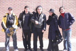 Spark Festival - February 2008. From left to right: Andrei Kivu, Petre Teodorescu, Iancu Dumitrescu, Ana Maria Avram, Gustavo Aguilar on a sunny day at minus 20 degrees - University of Minnesota.